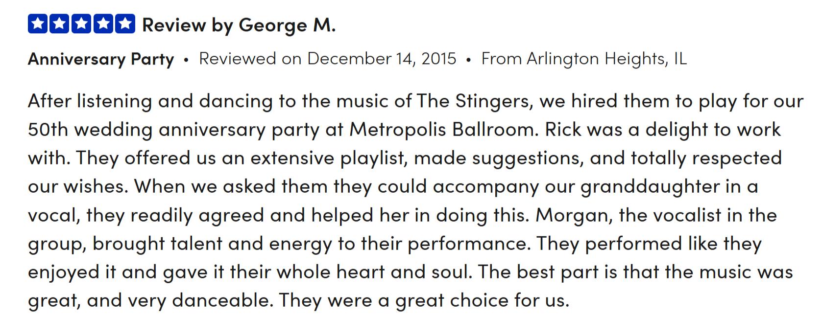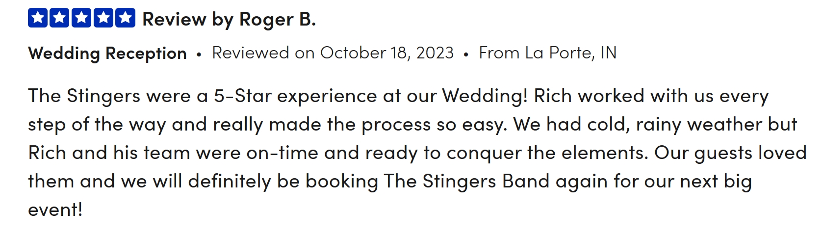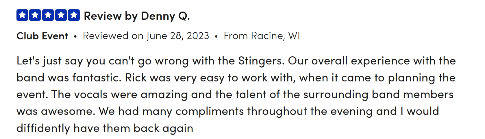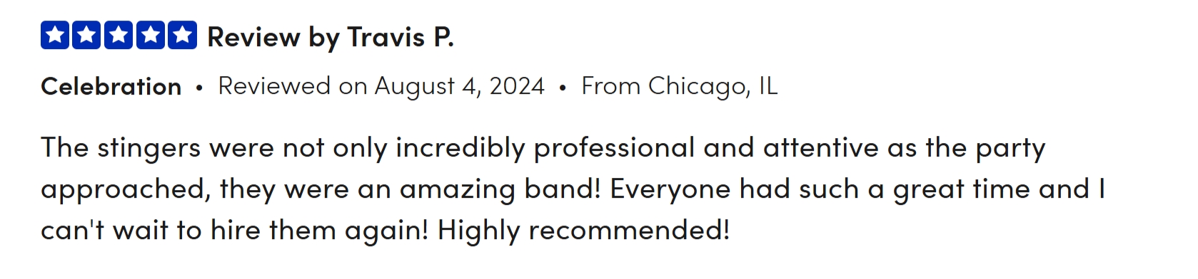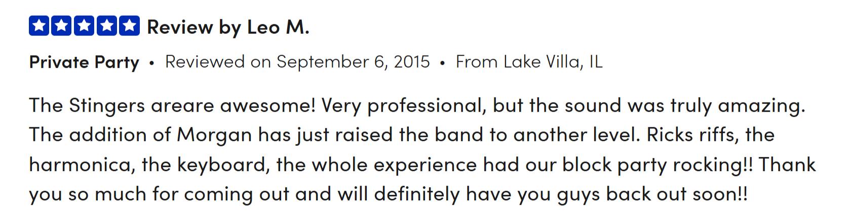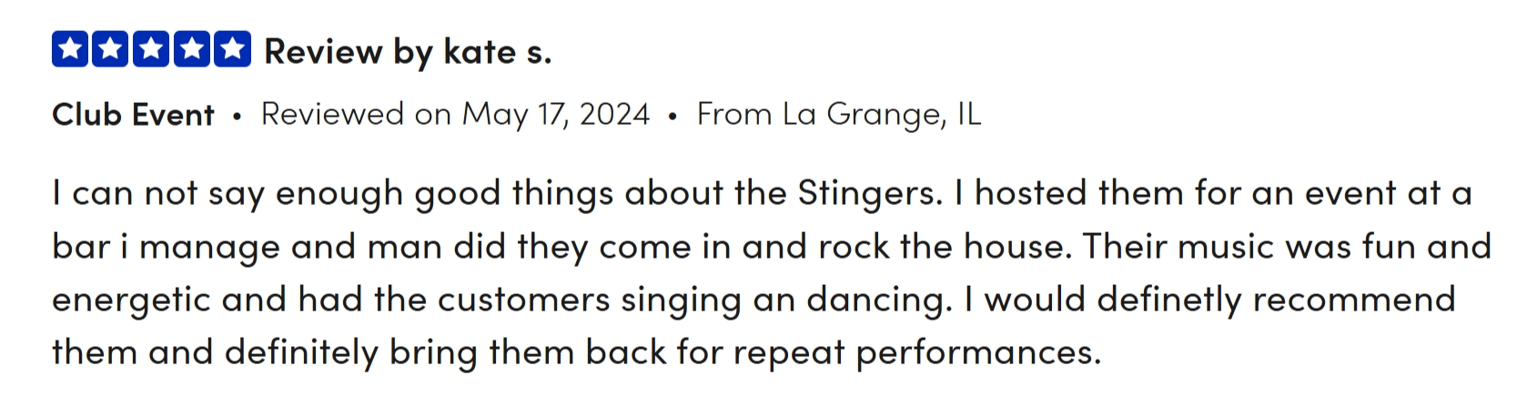 Book The Stingers for your festival, community concert, restaurant, bar, venue, or private event—including birthdays, anniversaries, weddings, corporate events, and other special occasions. With a high-energy performance and a playlist full of crowd-pleasing hits, we guarantee an unforgettable experience that will exceed your expectations!
