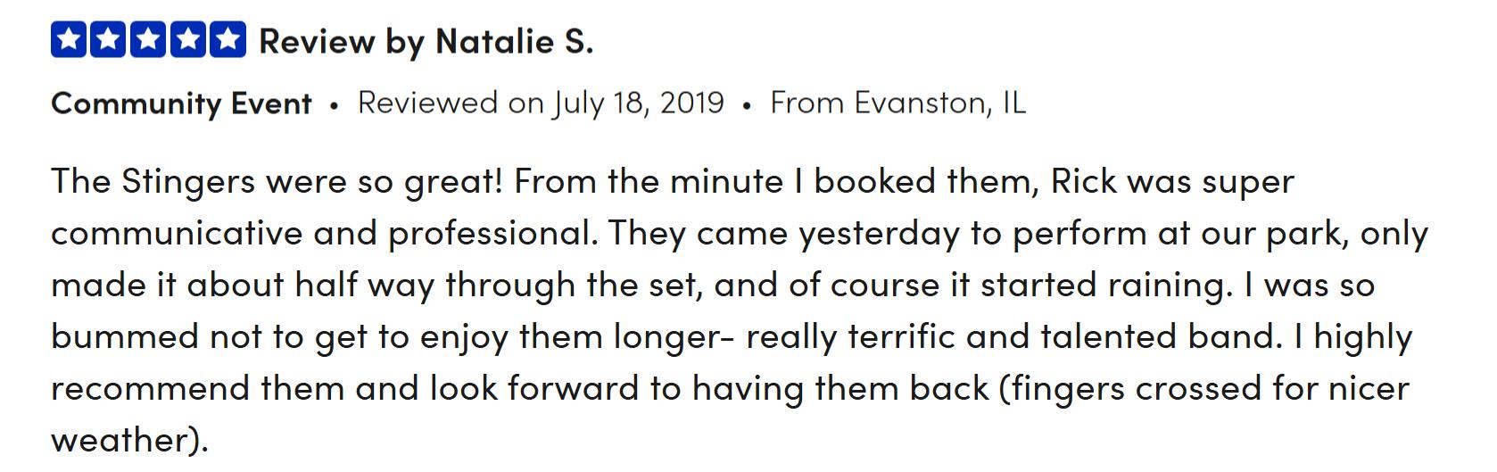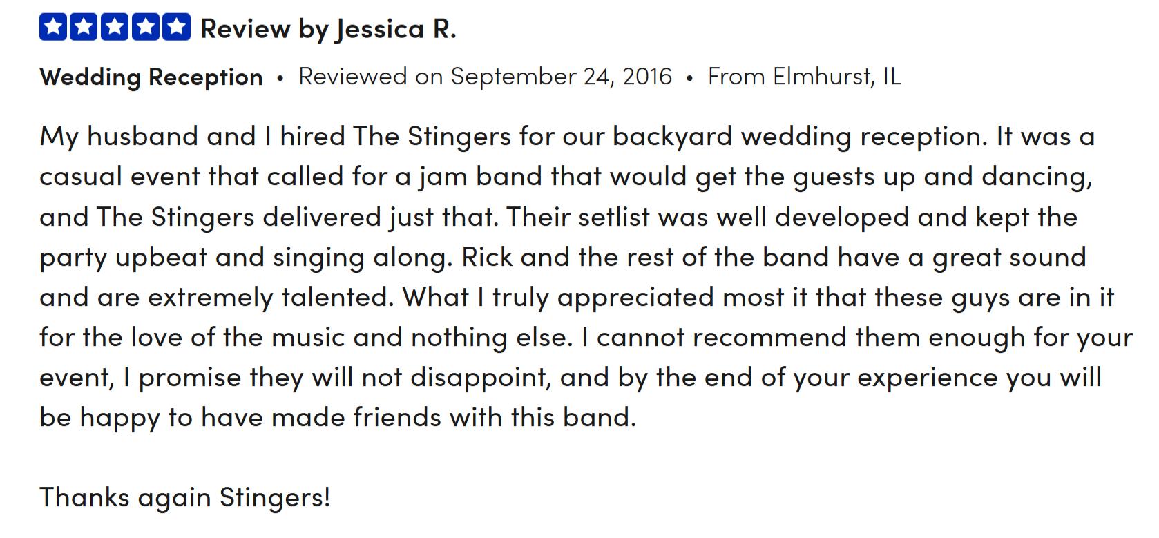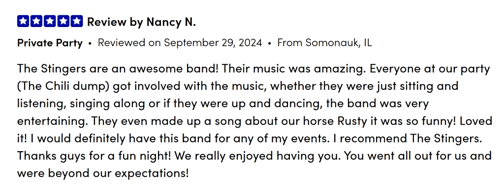 Book The Stingers for your festival, community concert, restaurant, bar, venue, or private event—including birthdays, anniversaries, weddings, corporate events, and other special occasions. With a high-energy performance and a playlist full of crowd-pleasing hits, we guarantee an unforgettable experience that will exceed your expectations!